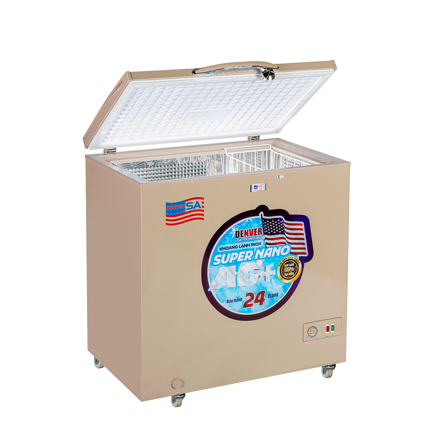 R600a + dàn lạnh đồng + bảo ôn dày |