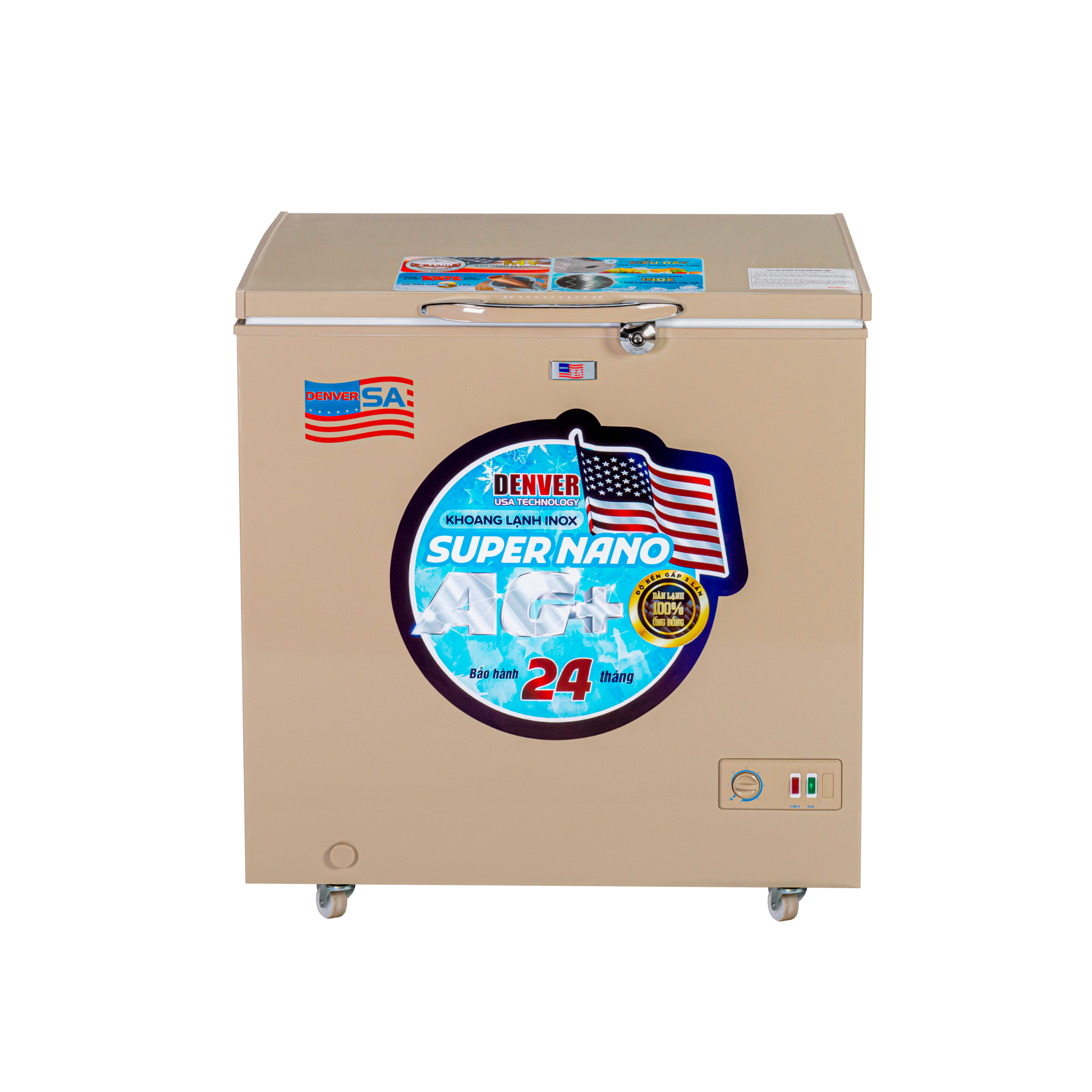 Gas R600a + dàn lạnh đồng + bảo ôn dày |