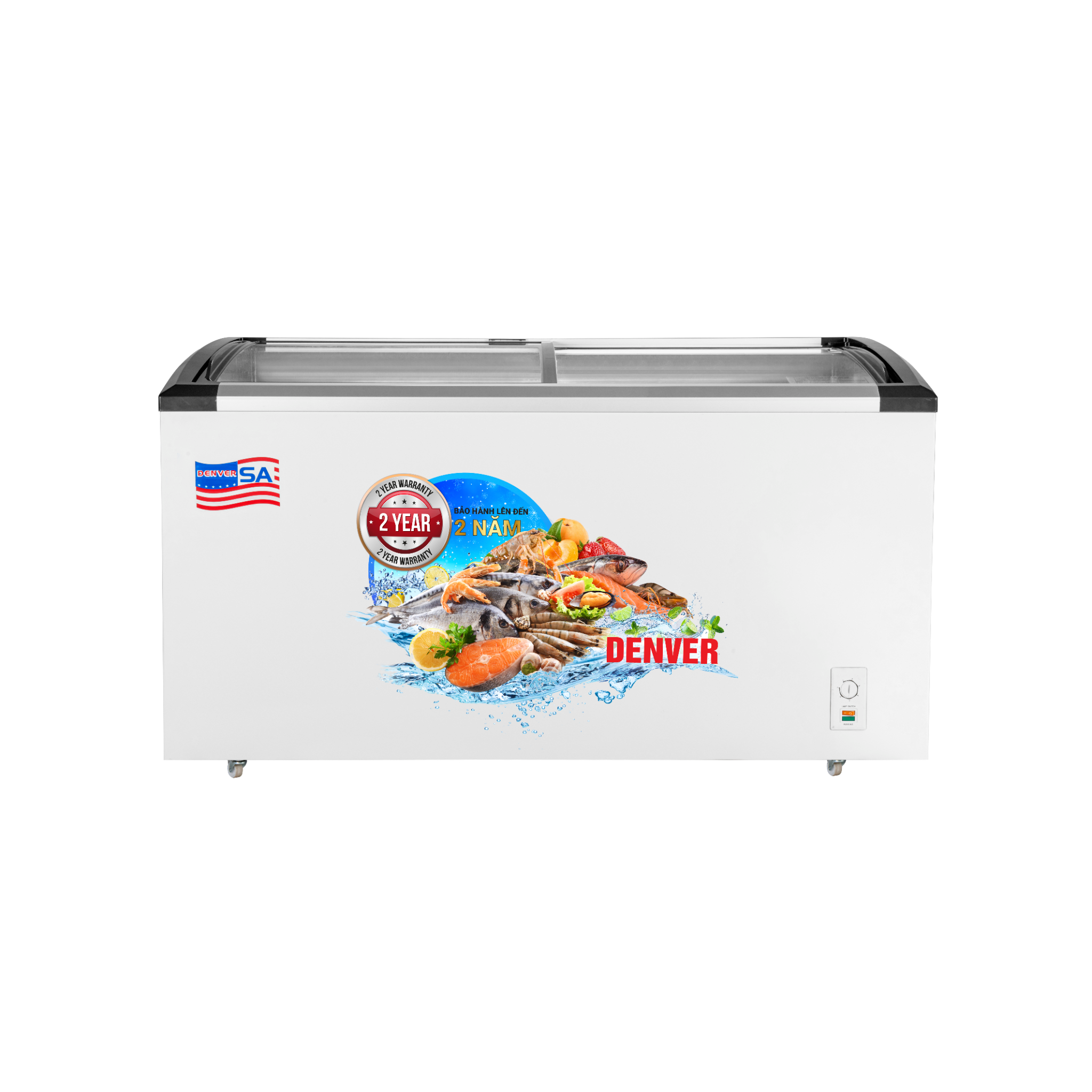 Tủ đông Denver AS 1280K - dung tích 620L, mặt kính cong trượt, phù hợp với mô hình bán lẻ thực phẩm sạch, hải sản, kem và hàng đông lạnh chuyên nghiệp